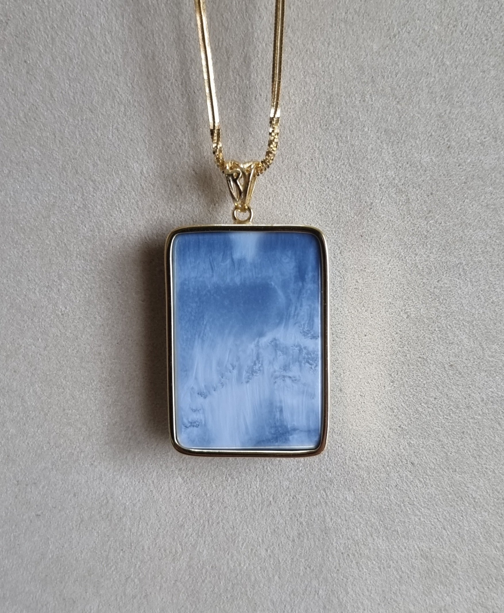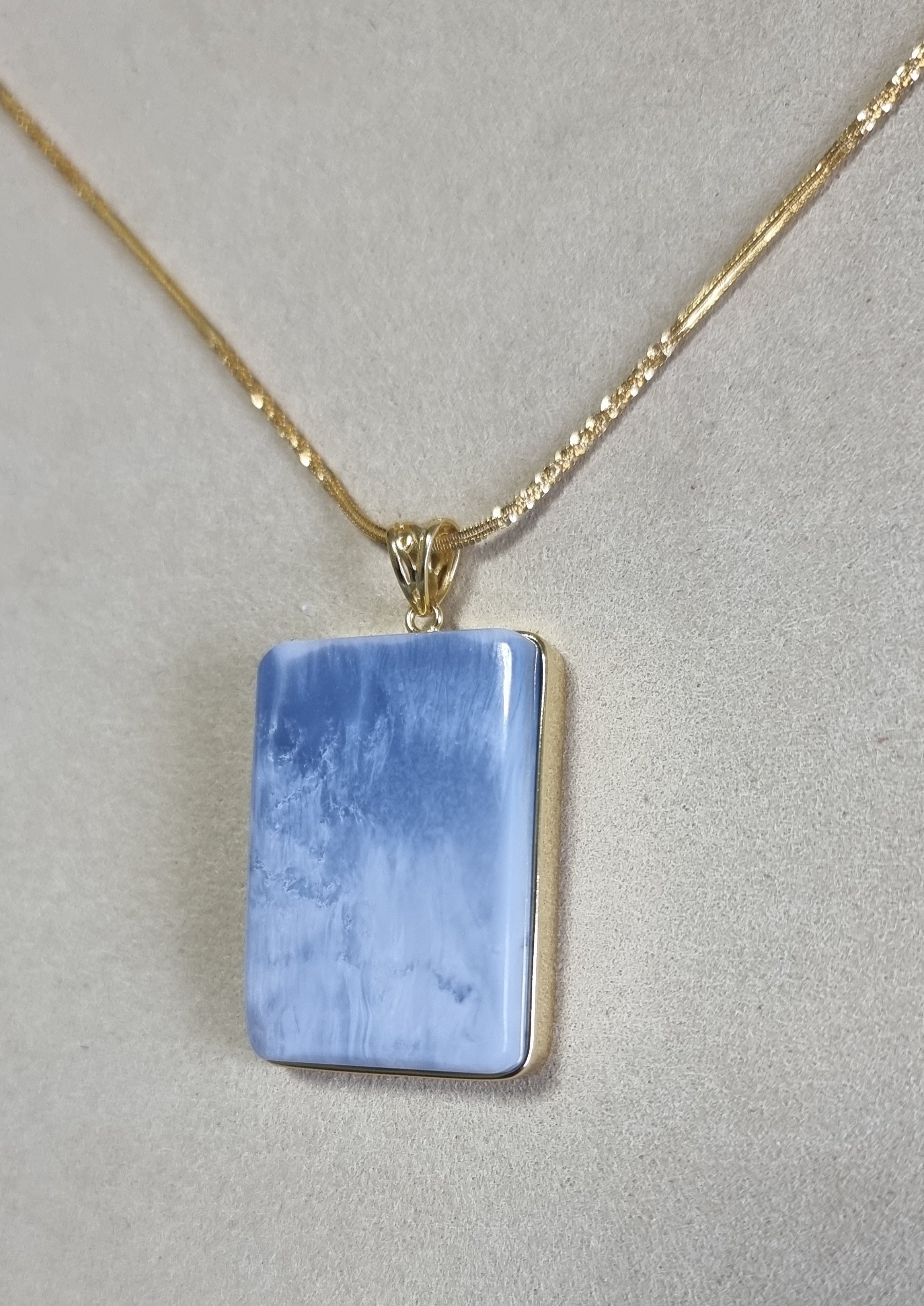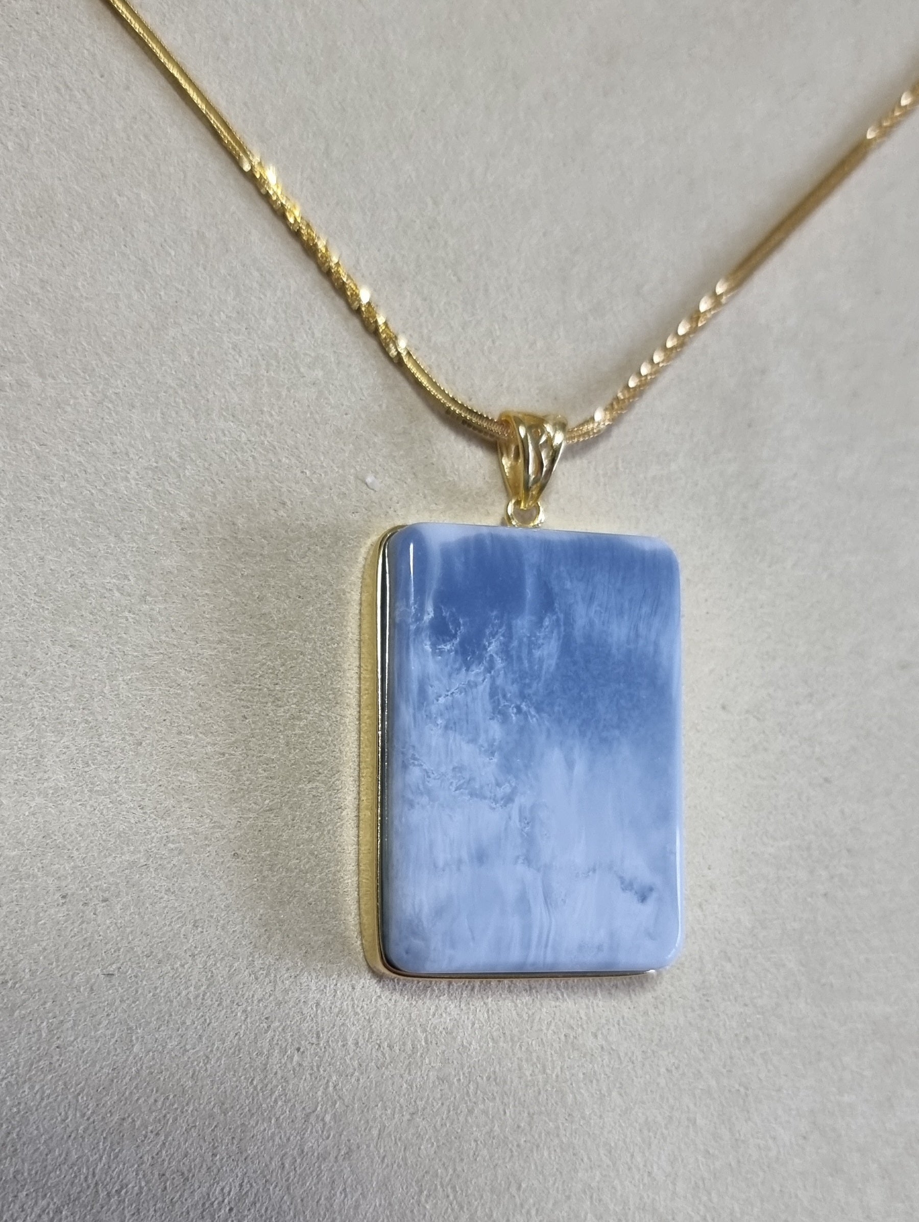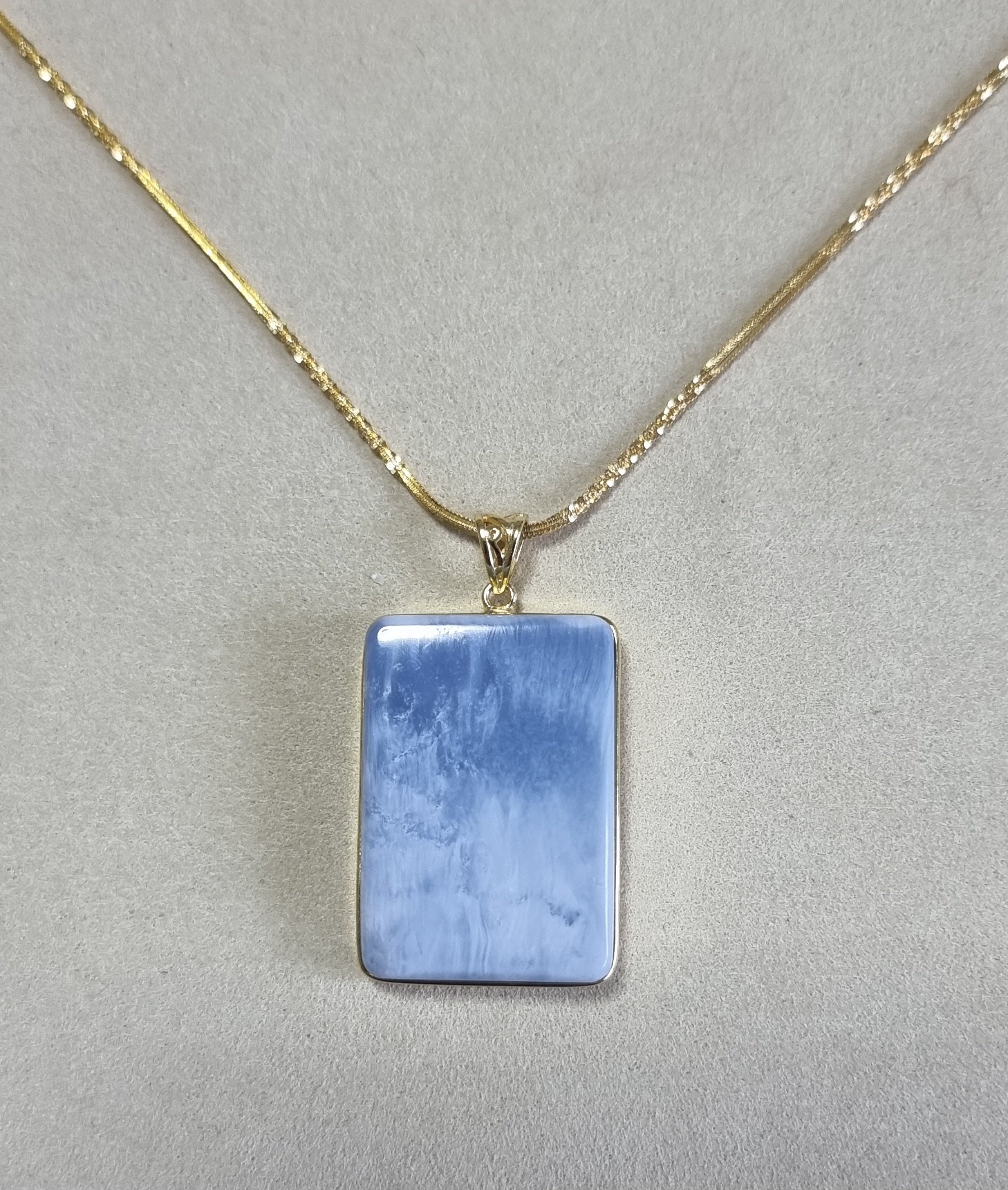 Blue Opal Pendant 25*36*8.5mm with S925 Gold Chain 44cm included Certification 蓝欧宝/蛋白石