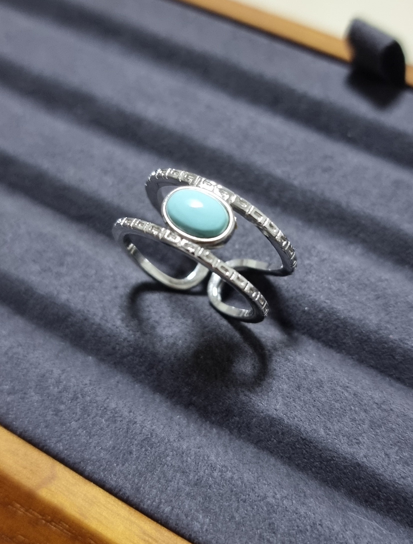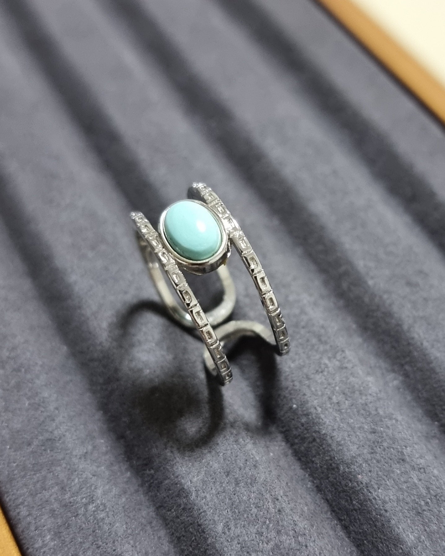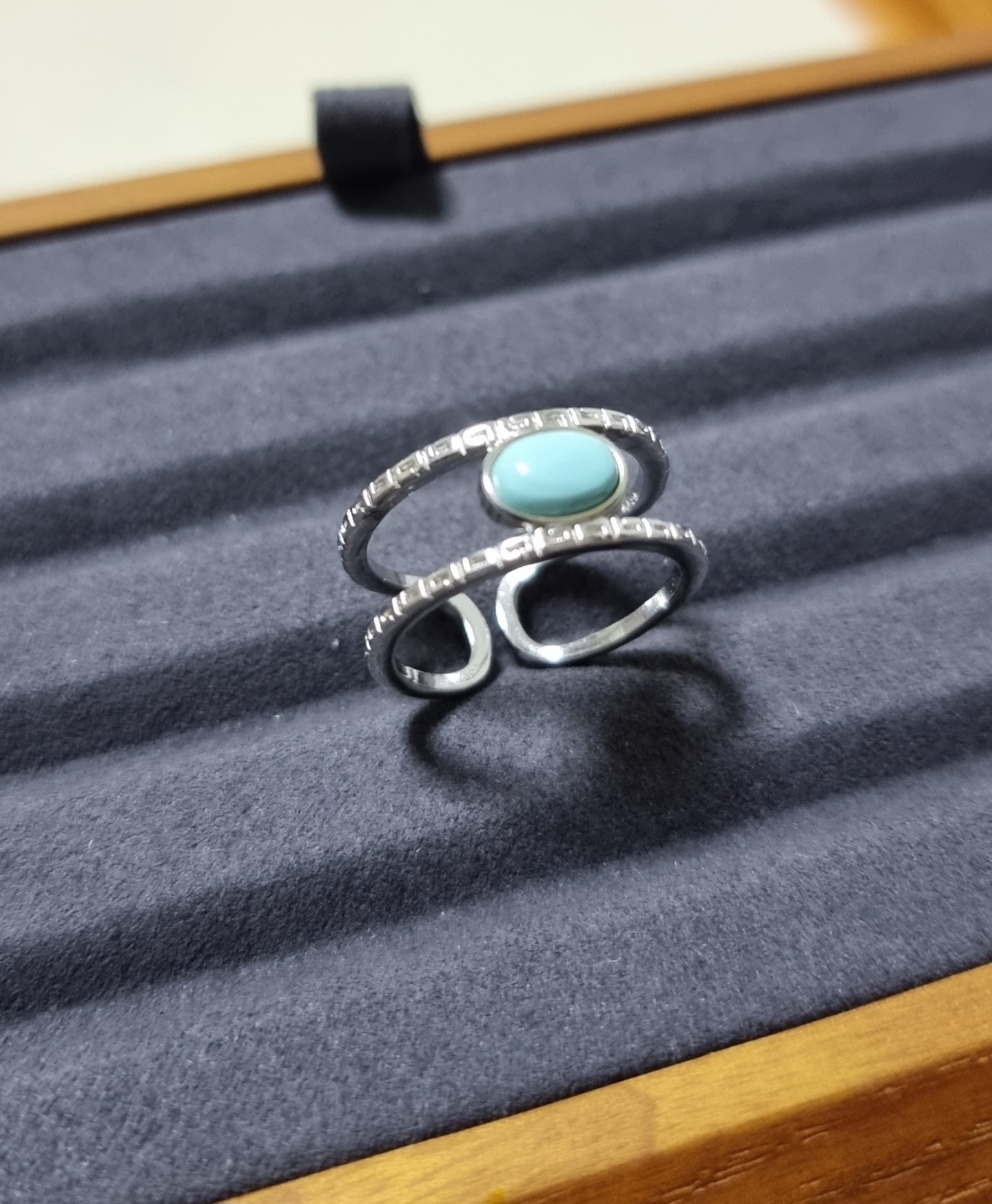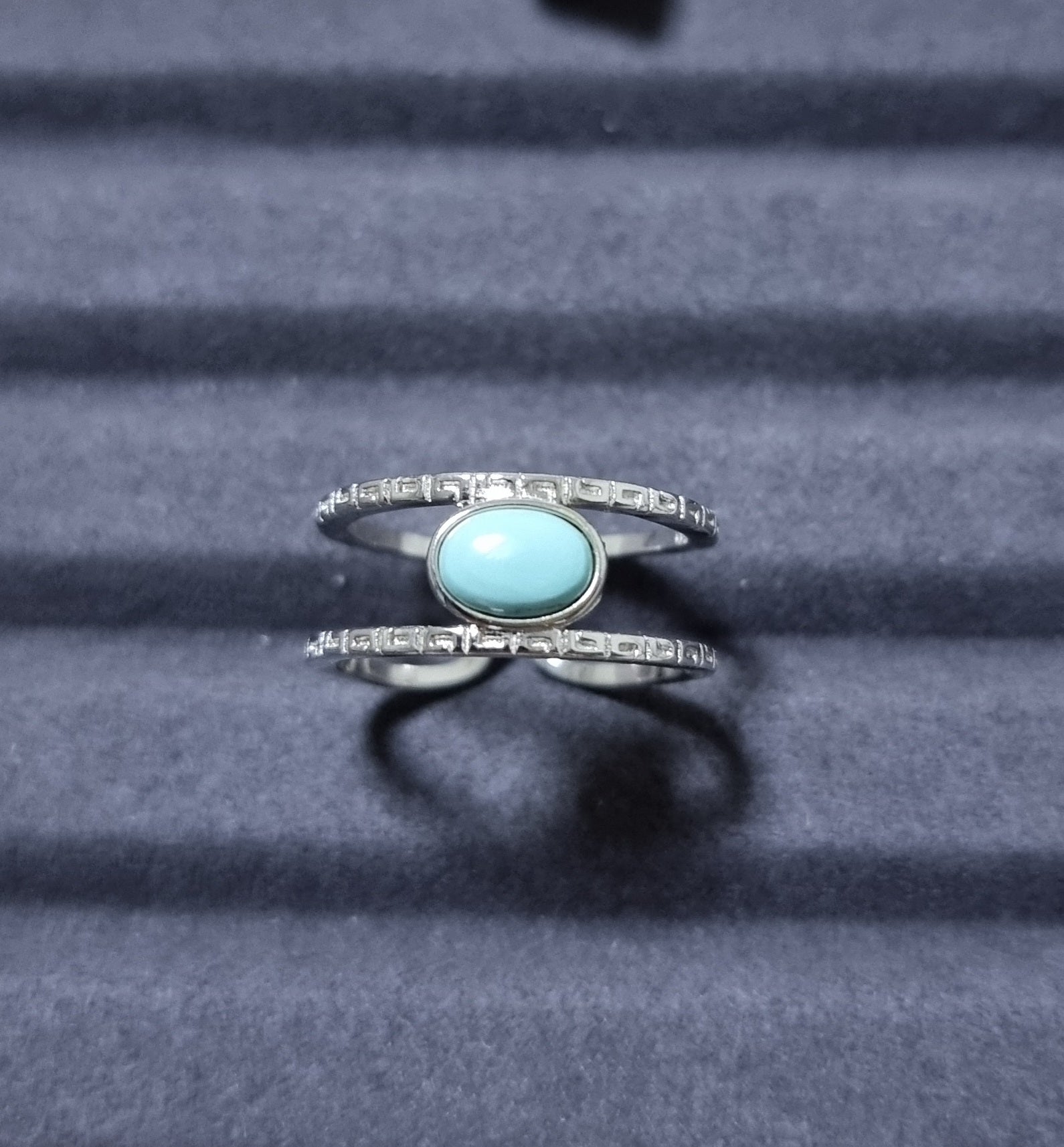 Turquoise in S925 Silver Adjustable Ring 绿松石