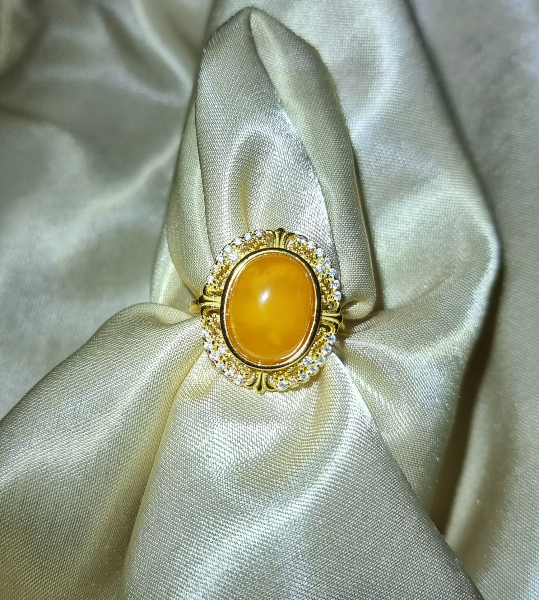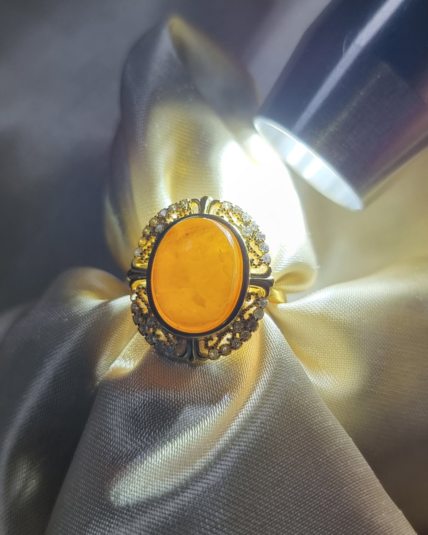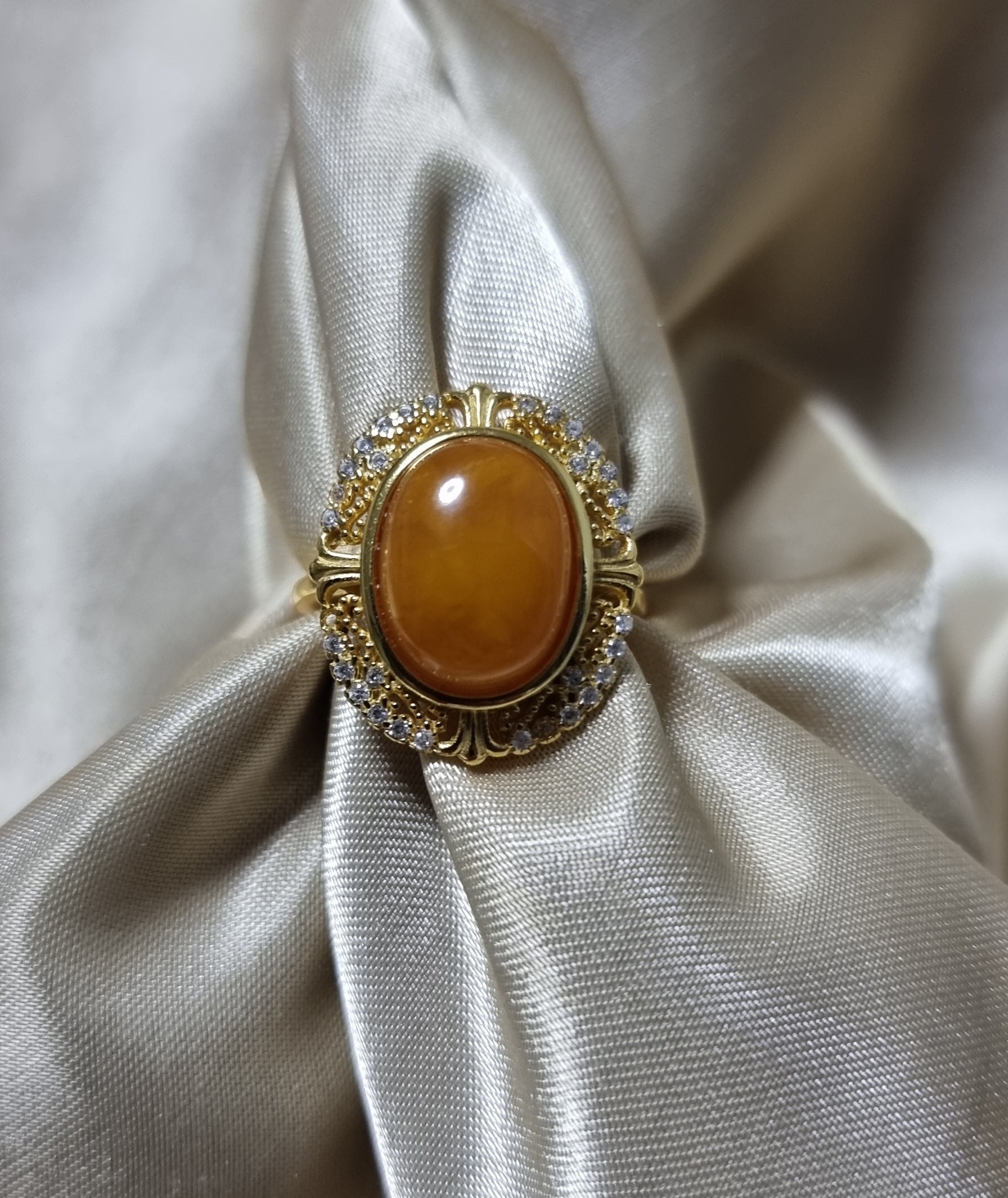Amber Beewax in Gold S925 Zicon Setting (High Grade) 13.5*10mm 蜜蜡