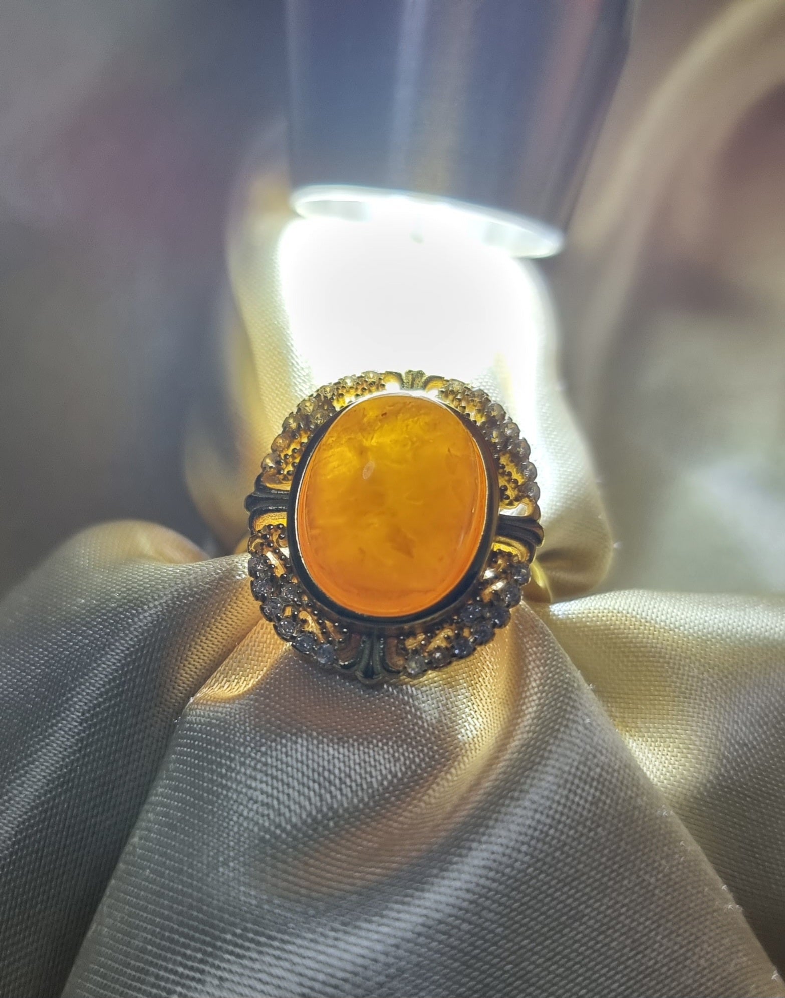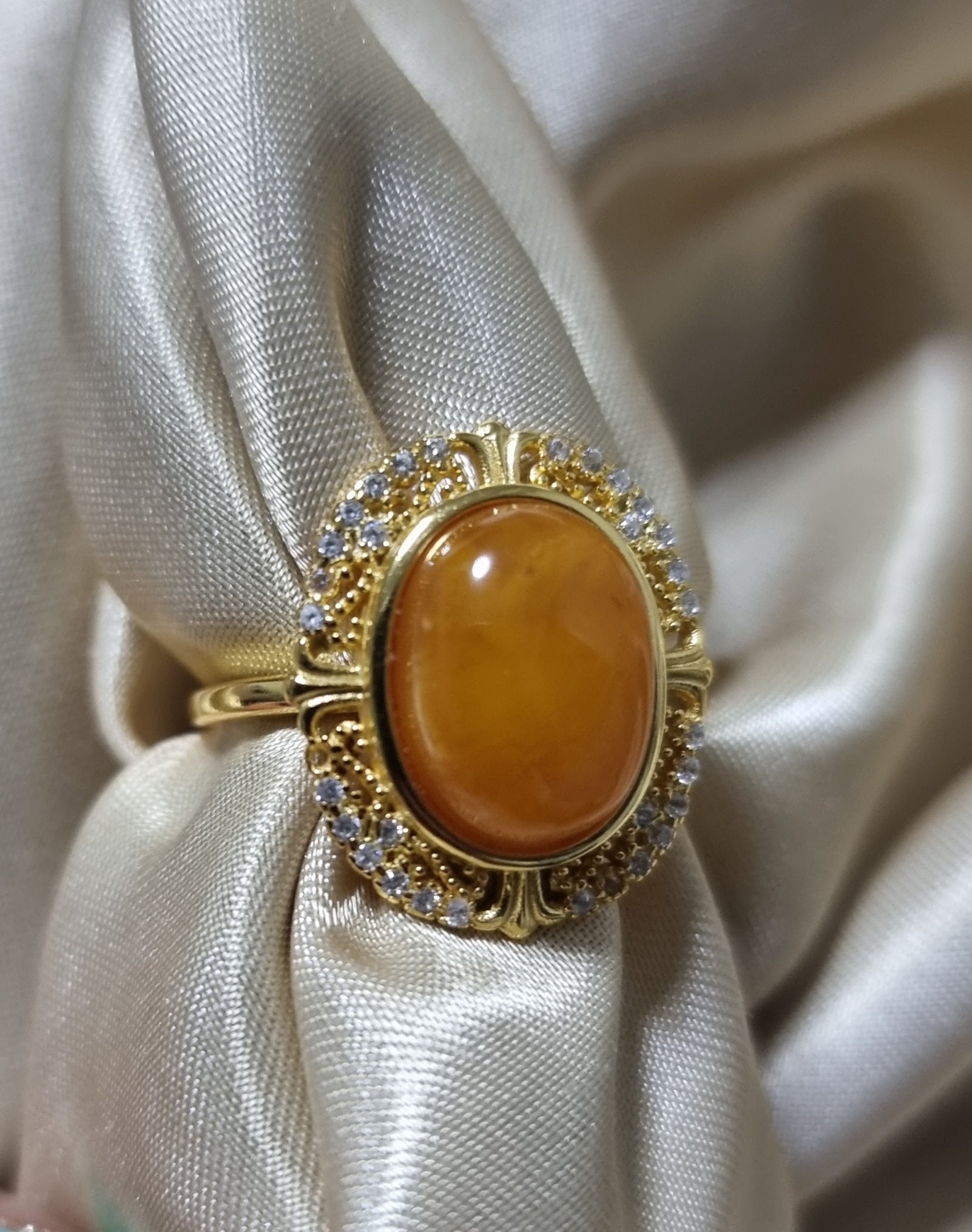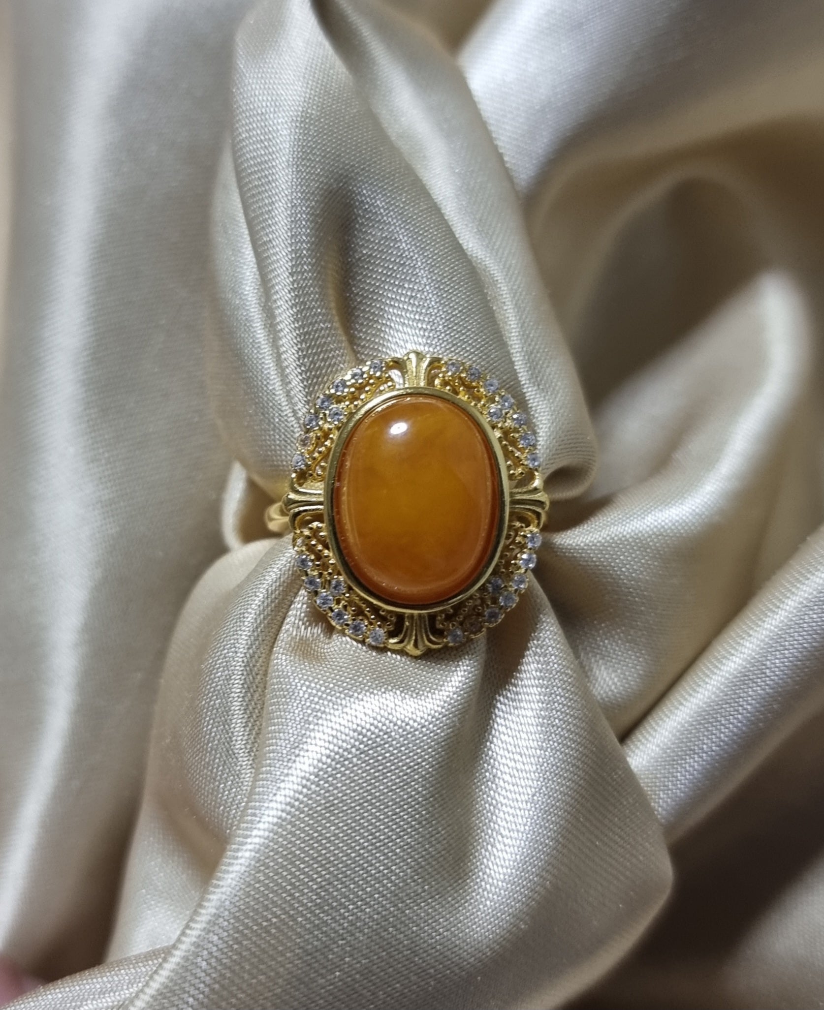 Amber Beewax in Gold S925 Zicon Setting (High Grade) 13.5*10mm 蜜蜡