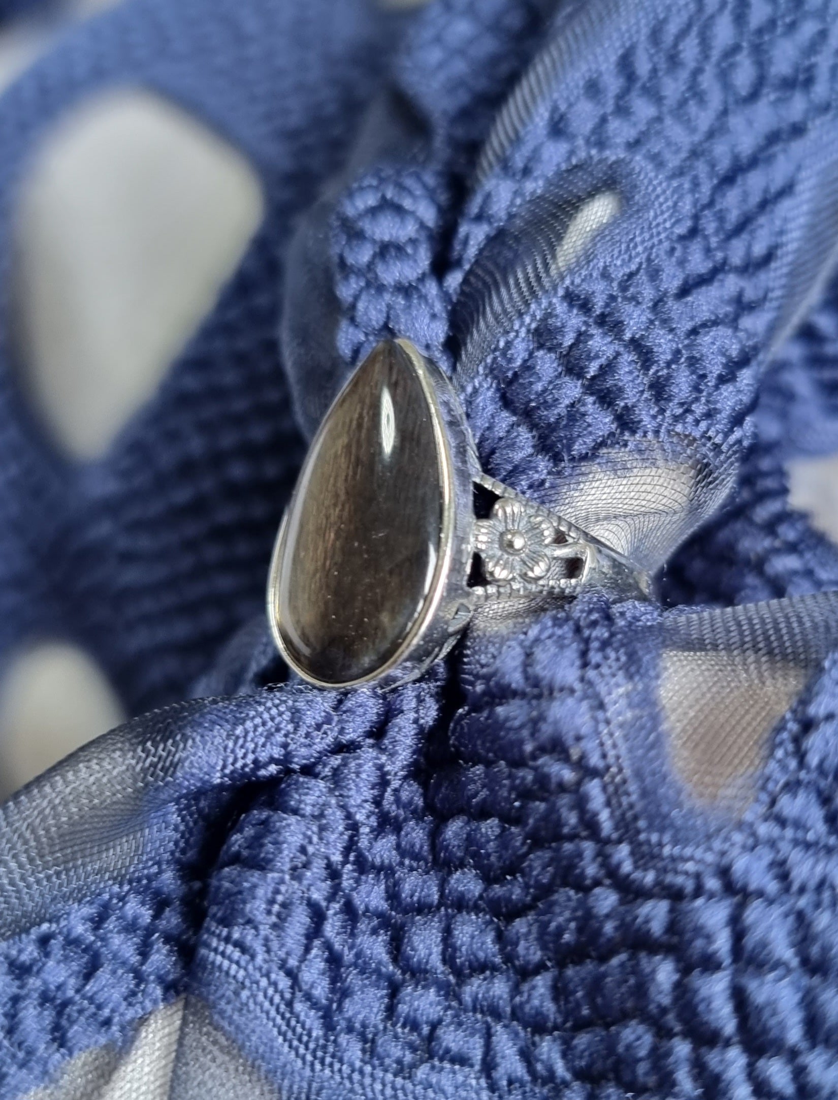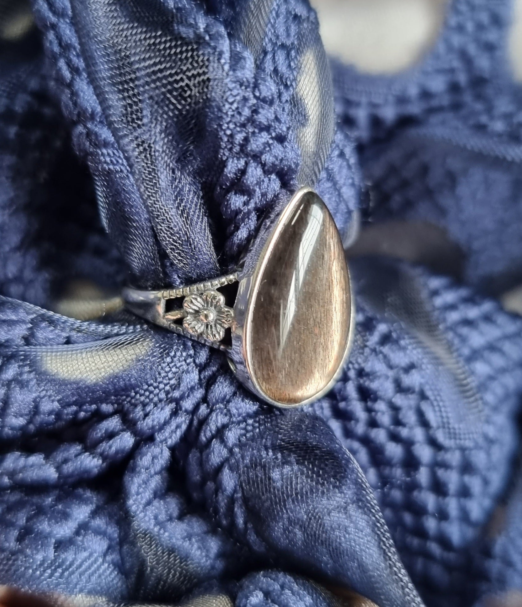 Black Sunstone Full Black Inclusion on Vintage S925 Silver (High Grade) 19*11mm 黑骨幹