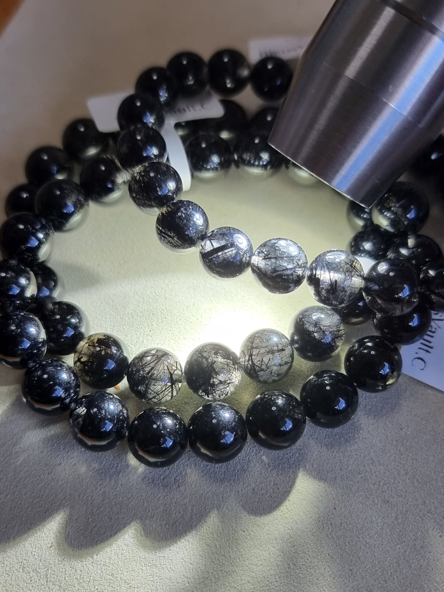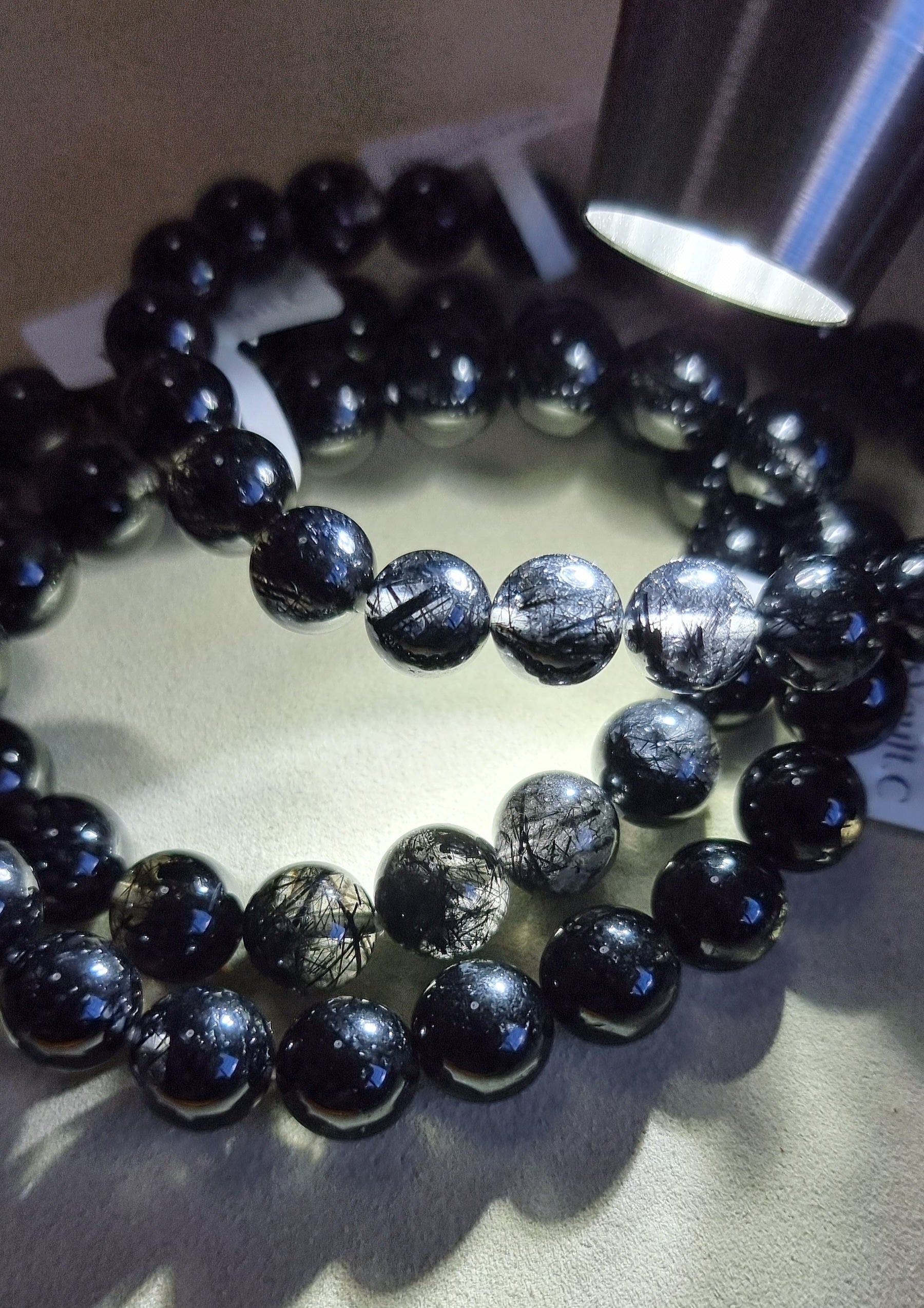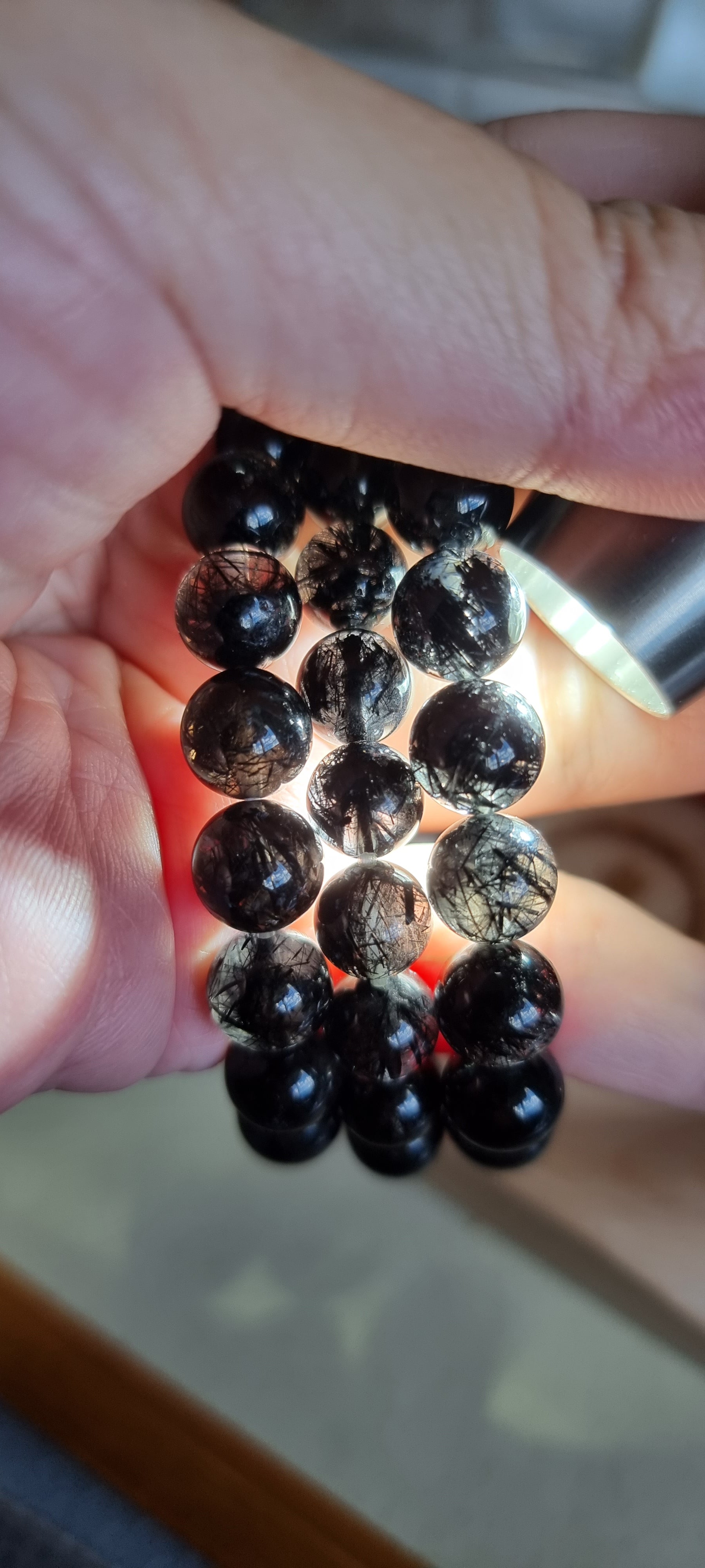 Black Rutilated Quartz Full Inclusion 9mm & 10mm (Premium Grade) 黑发晶