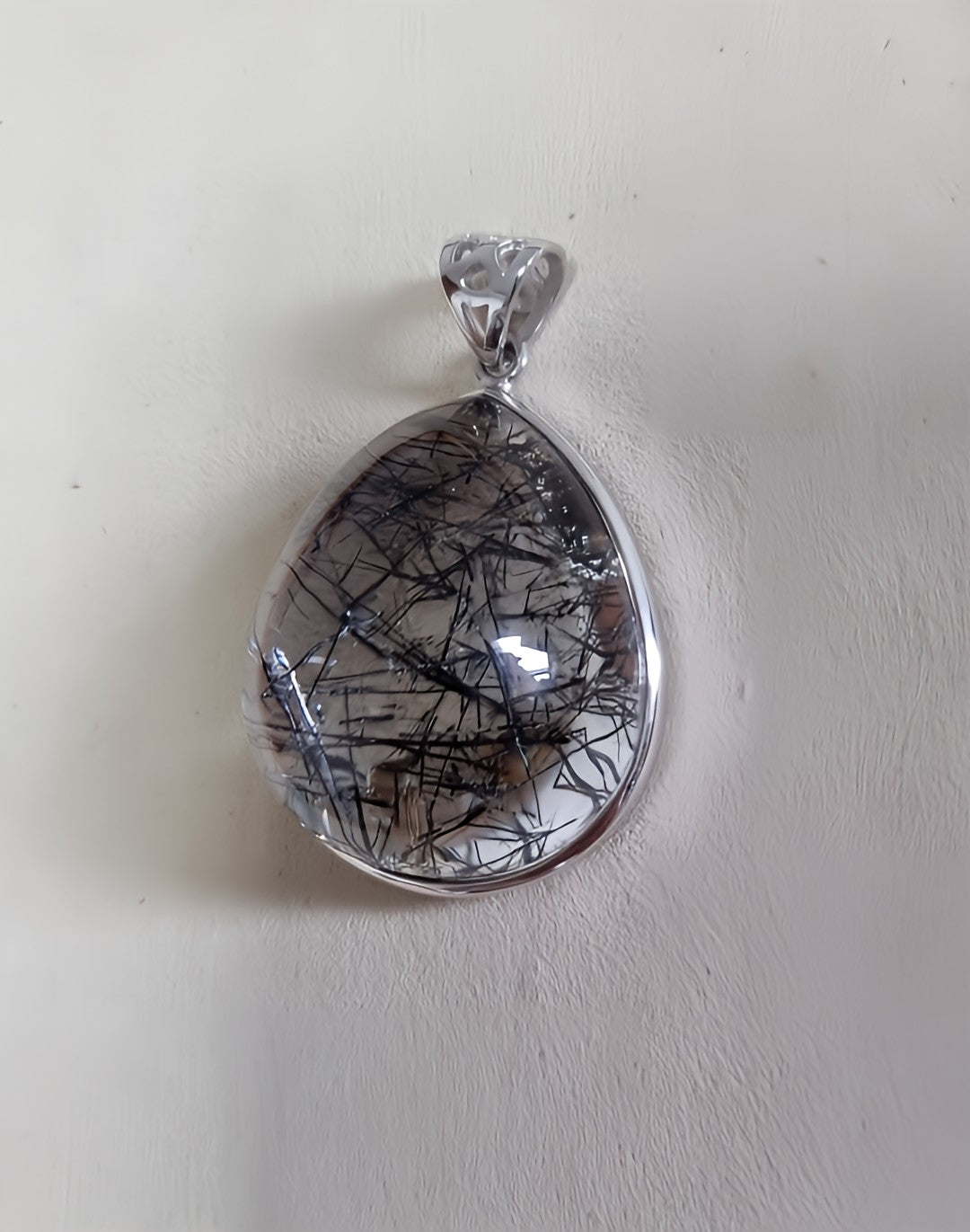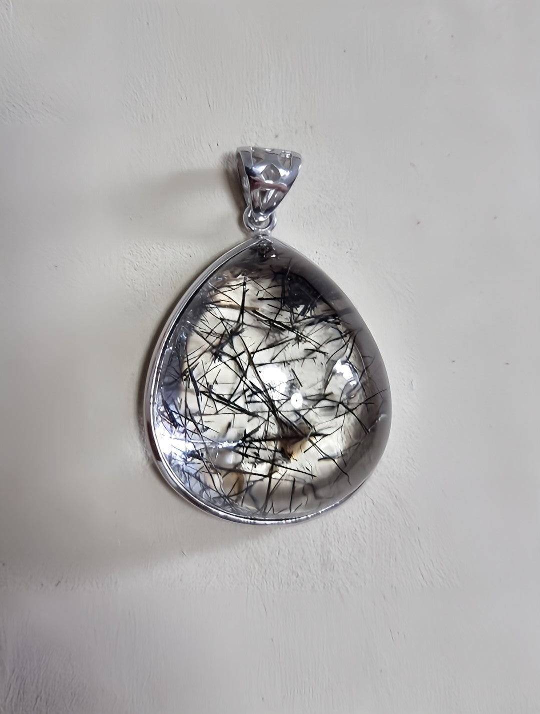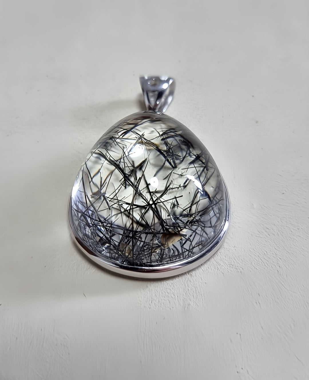 Black Rutilated Quartz Clear Clarity (Top Premium Grade) 36.5*32*18.8mm with Certification. Set in S925 Sterling Silver. 黑发晶