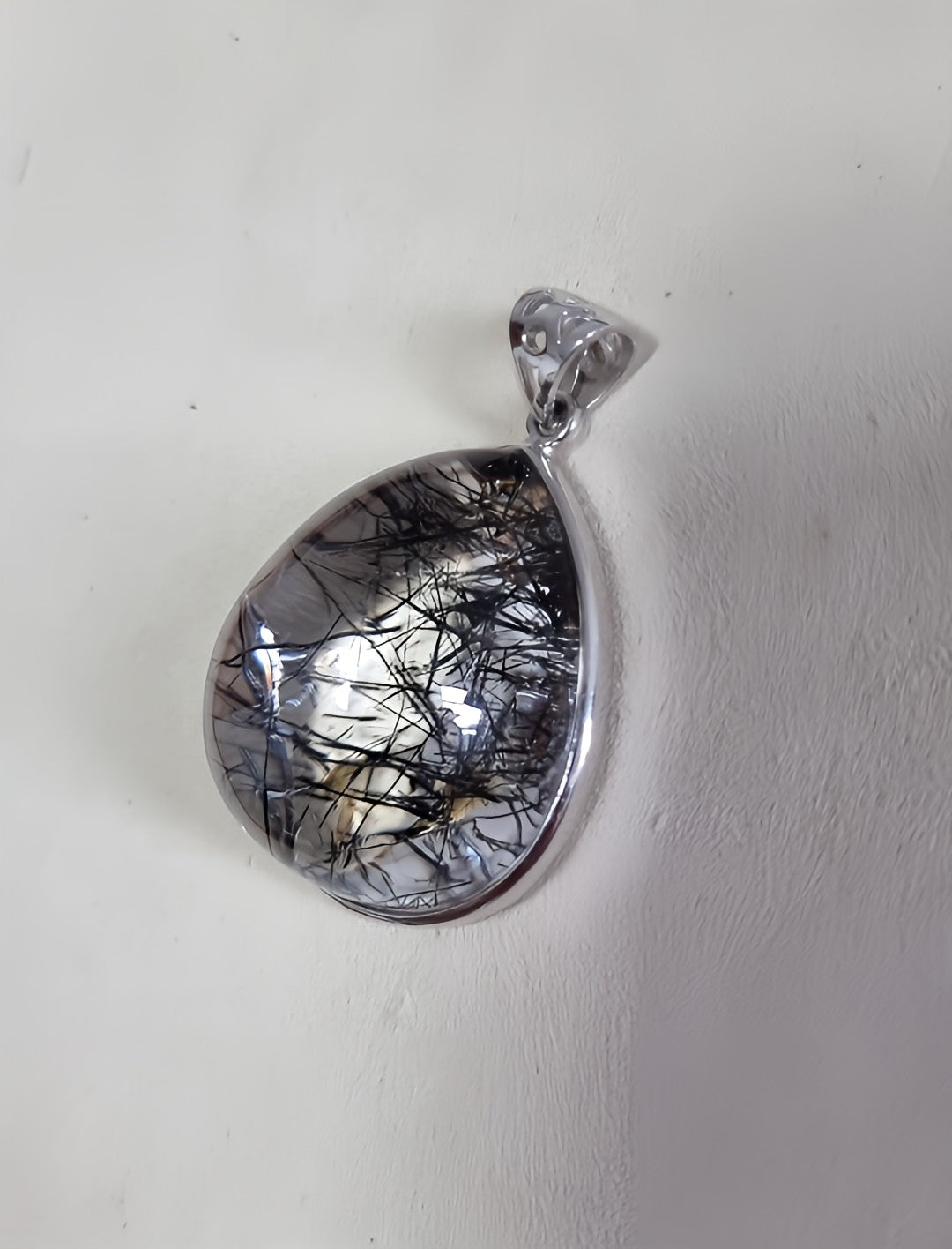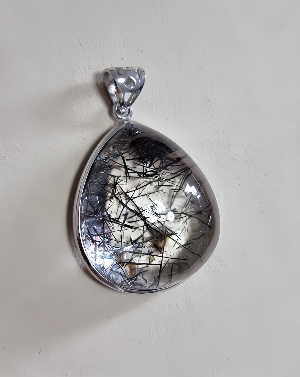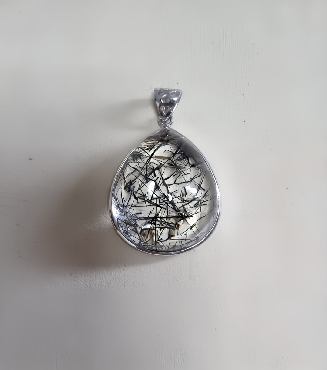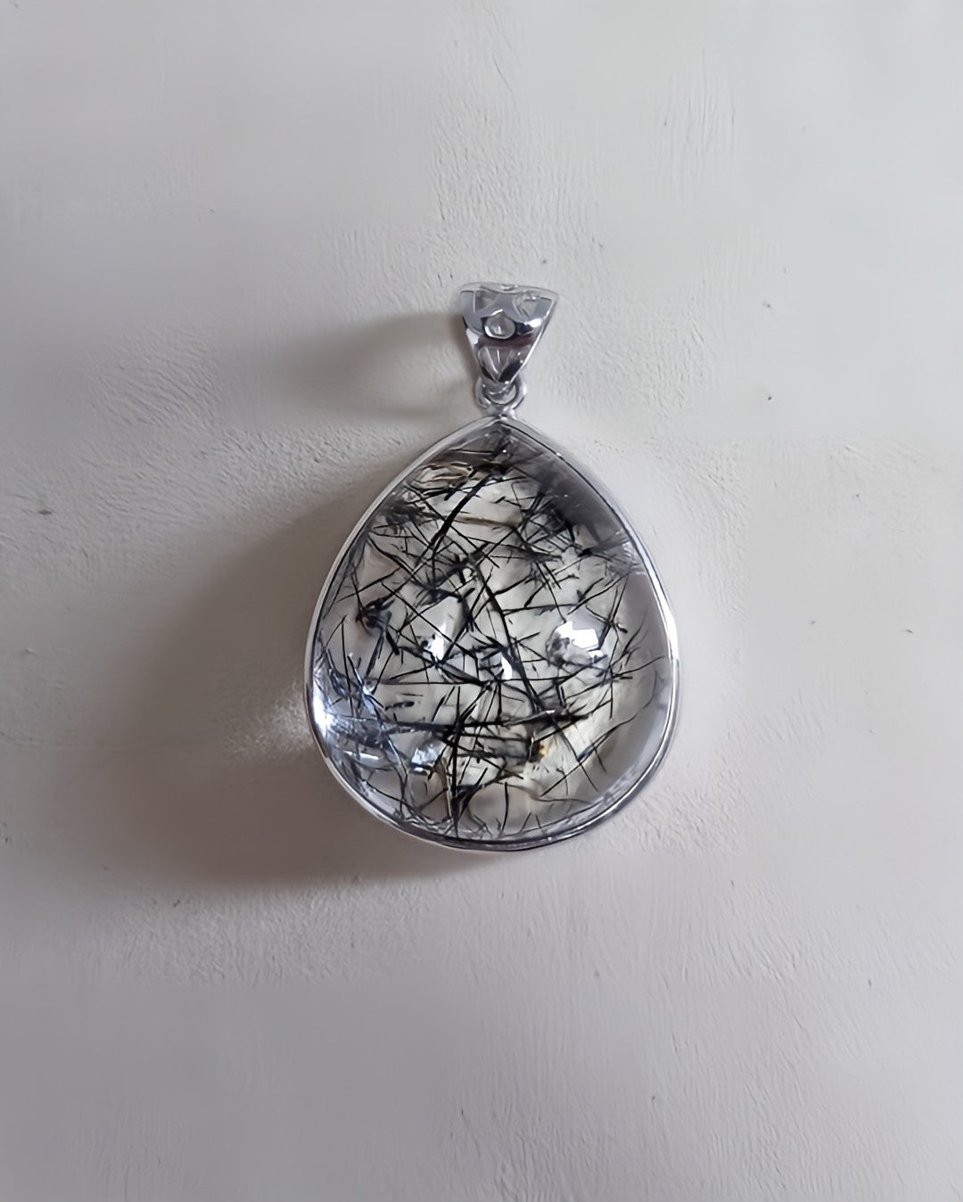 Black Rutilated Quartz Clear Clarity (Top Premium Grade) 36.5*32*18.8mm with Certification. Set in S925 Sterling Silver. 黑发晶