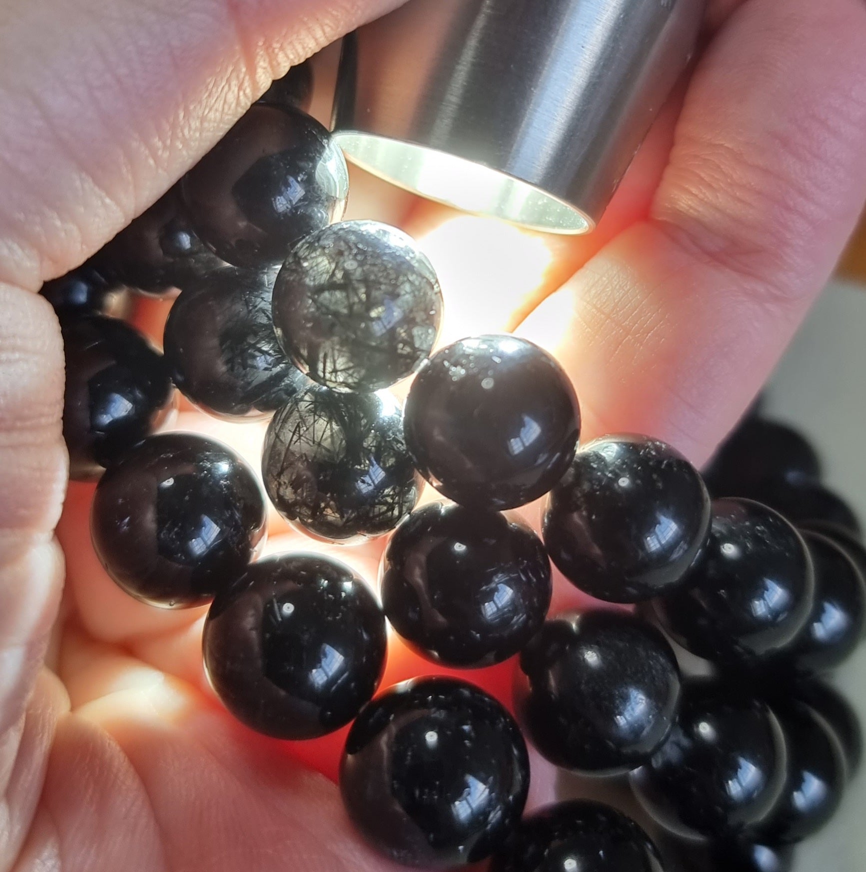 Black Rutilated Quartz Full Inclusion 11mm & 12mm (High Grade) 黑发晶