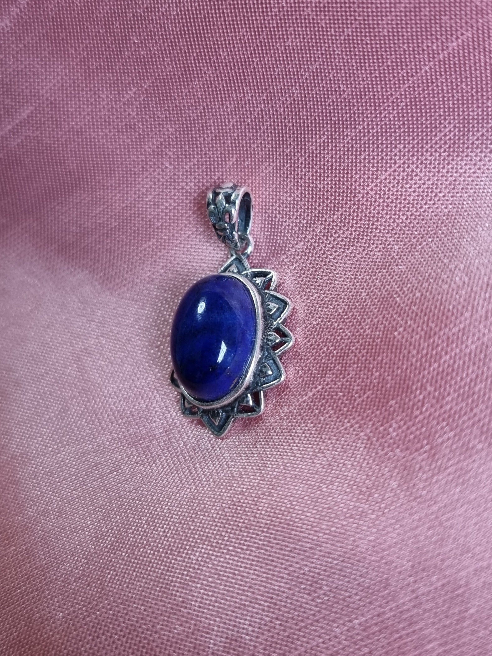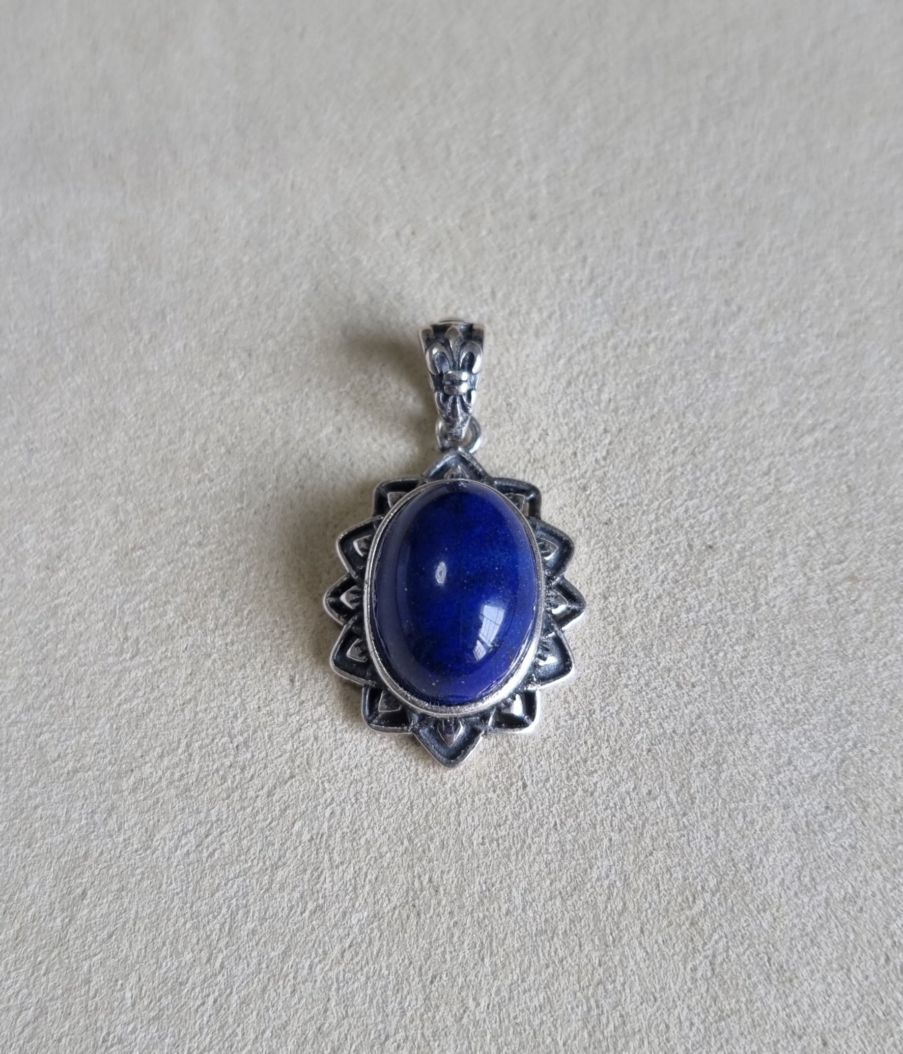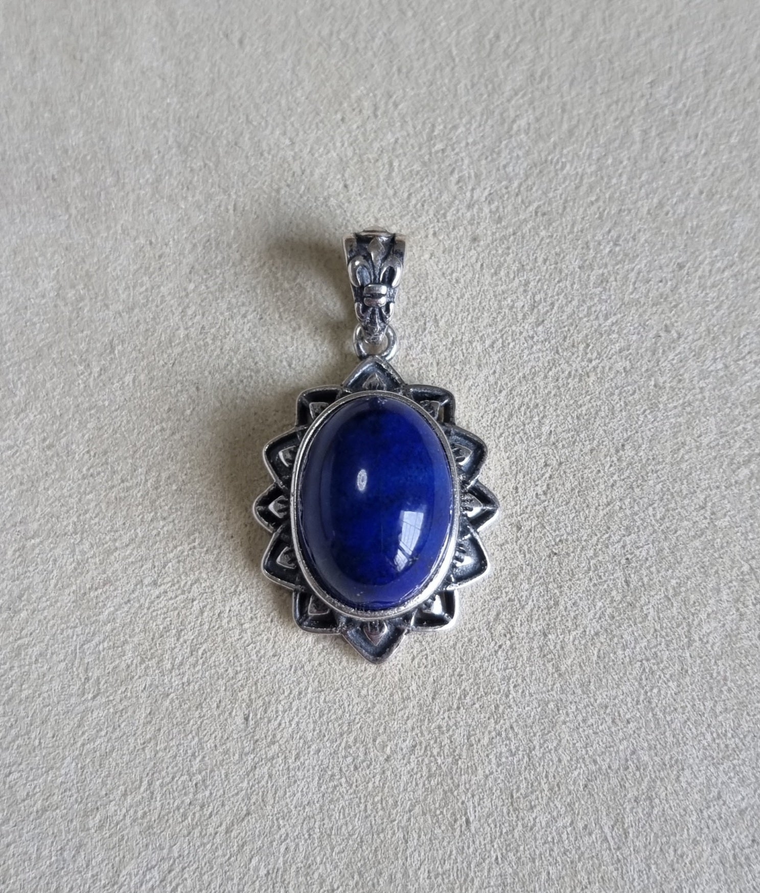Lapis Lazuli Oval Lotus in Tibetan Vintage S925 Silver 青金石