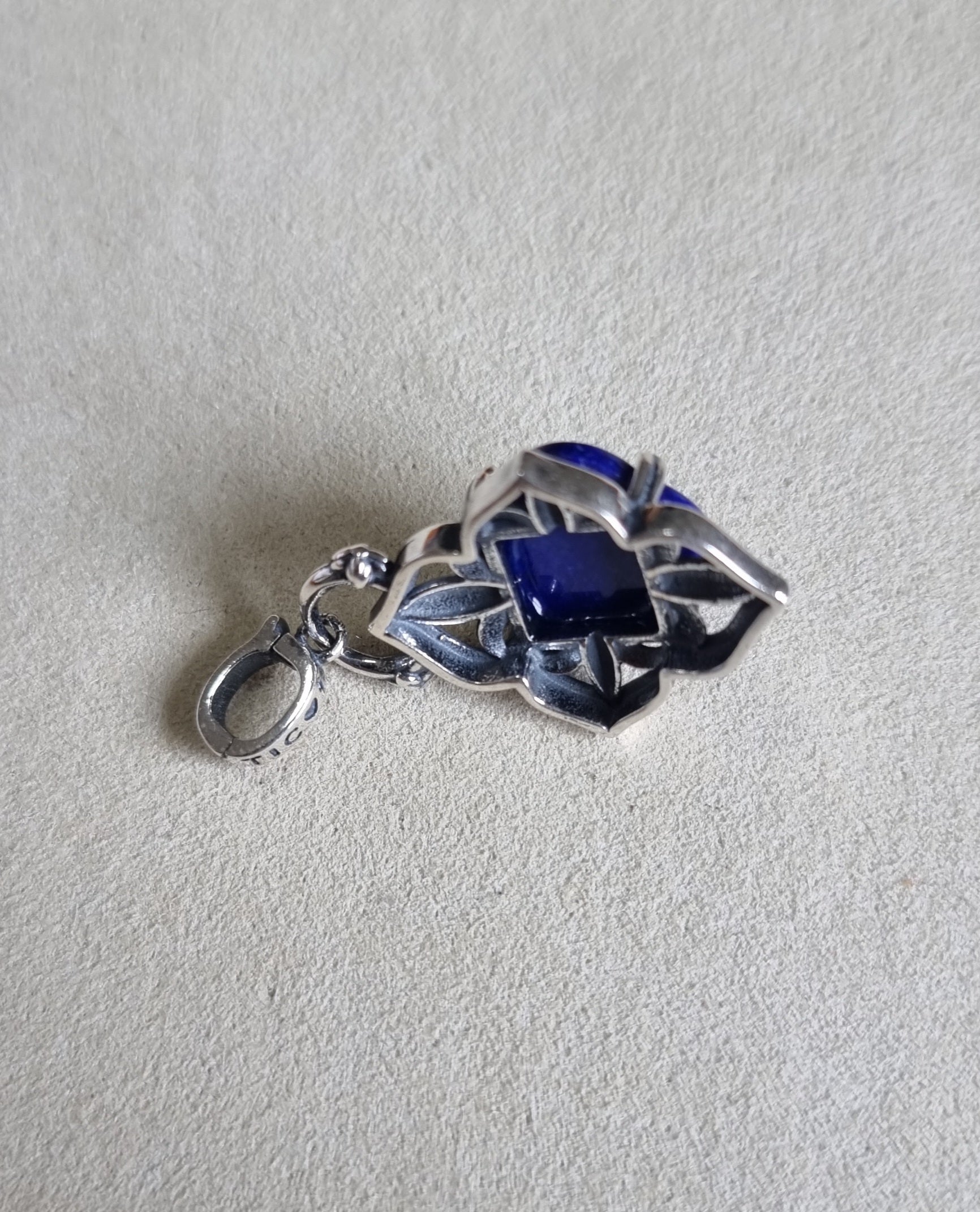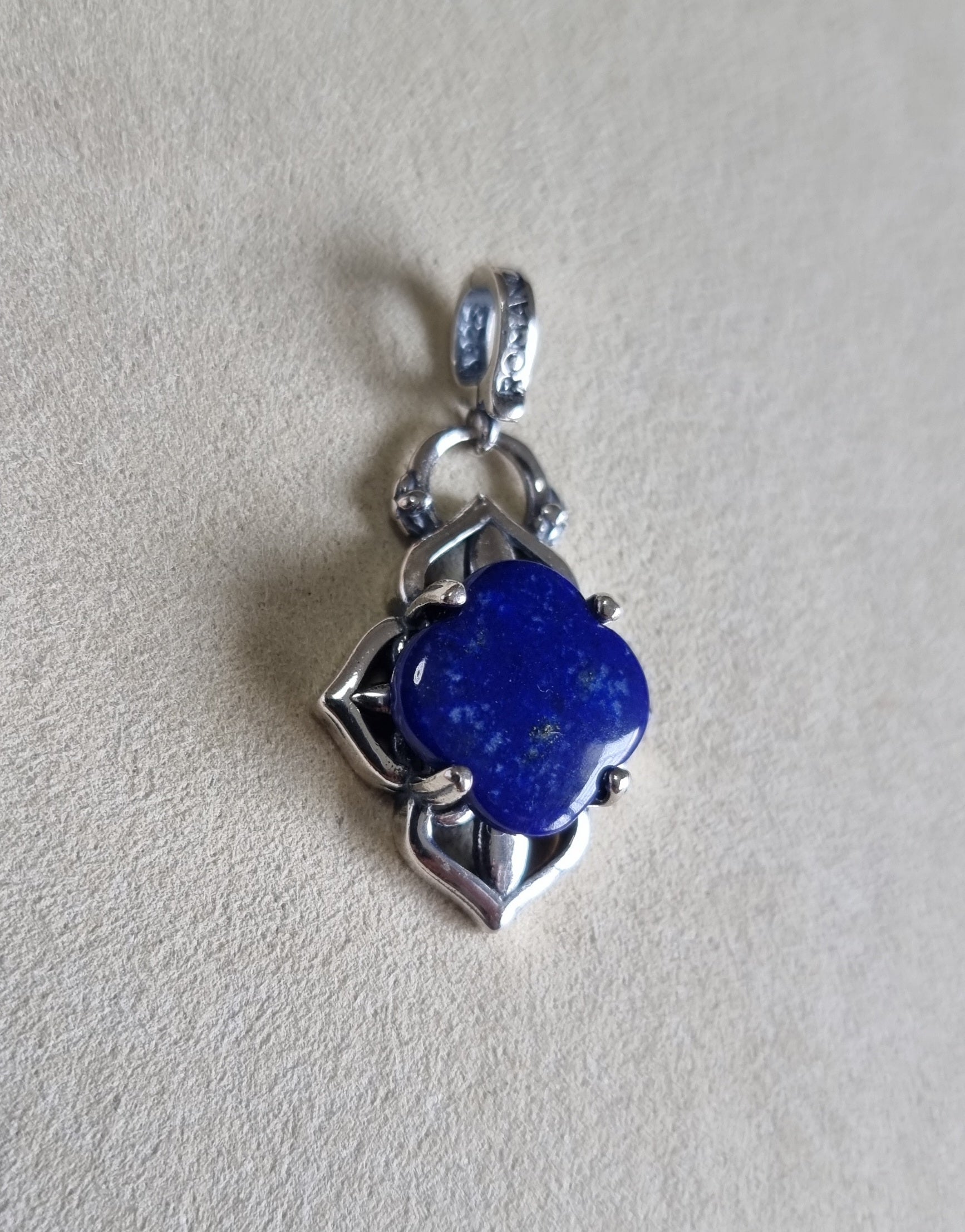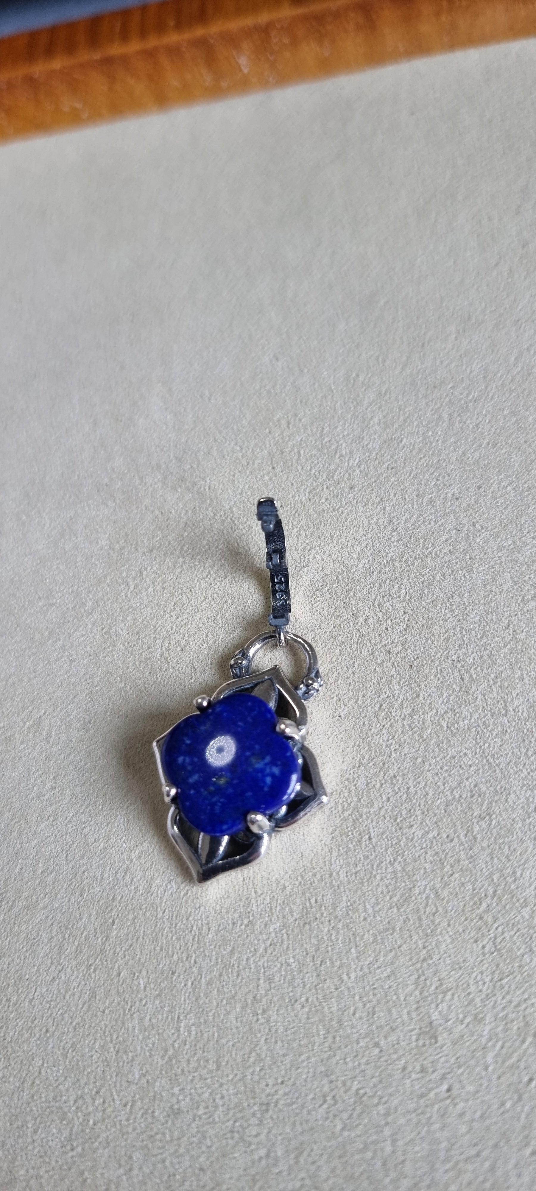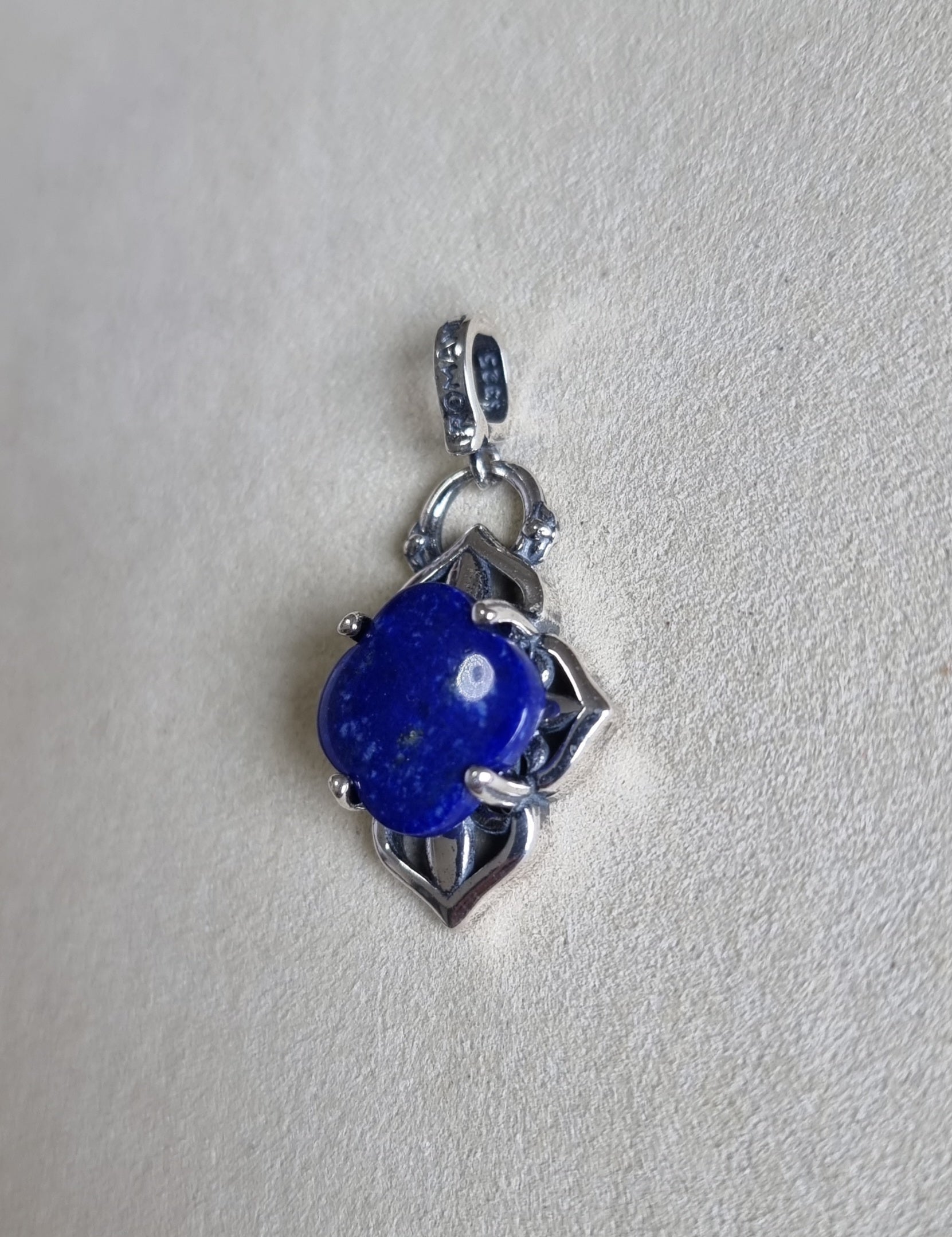 Lapis Lazuli Clover Lotus with Locked in Tibetan Vintage S925 Silver 青金石