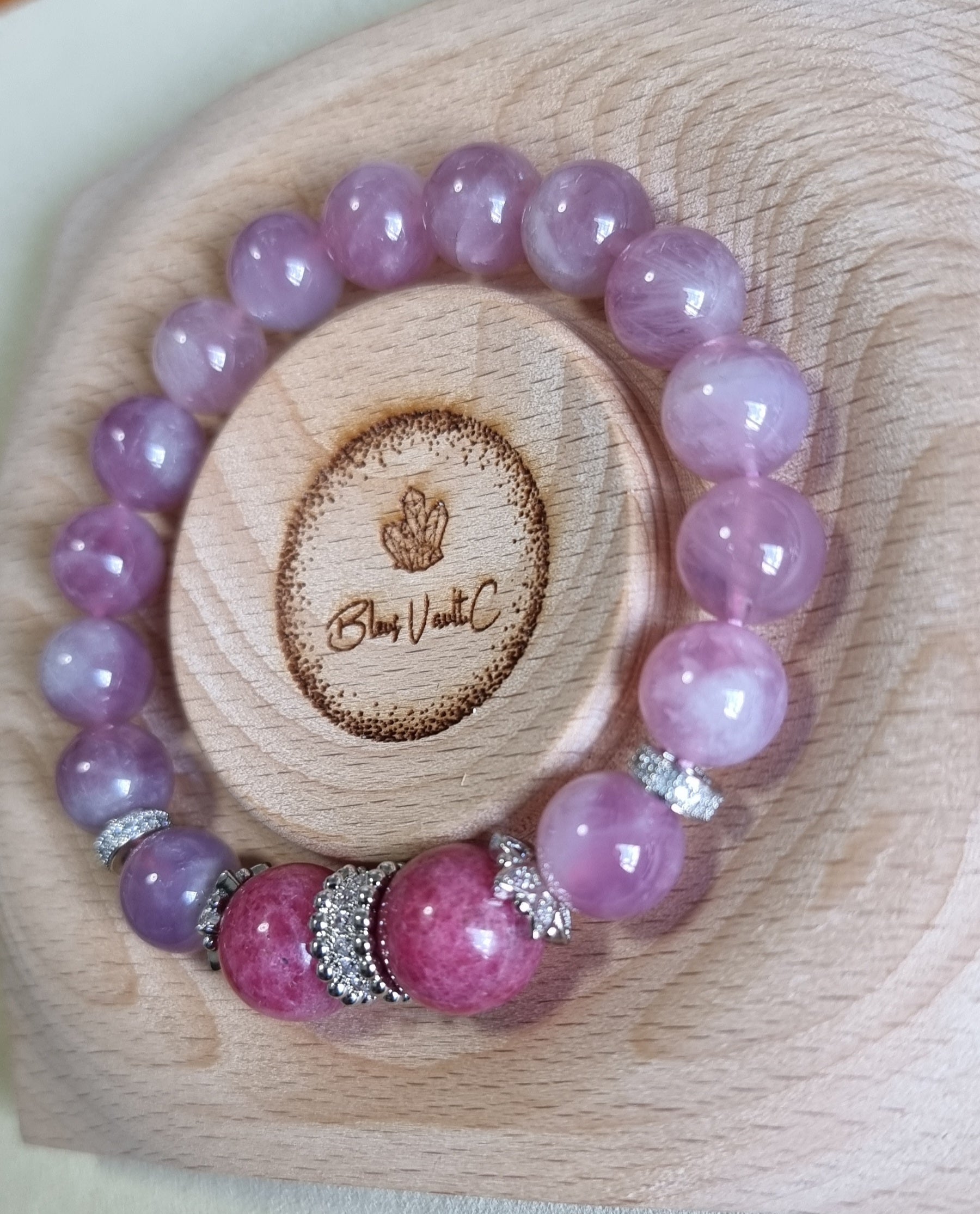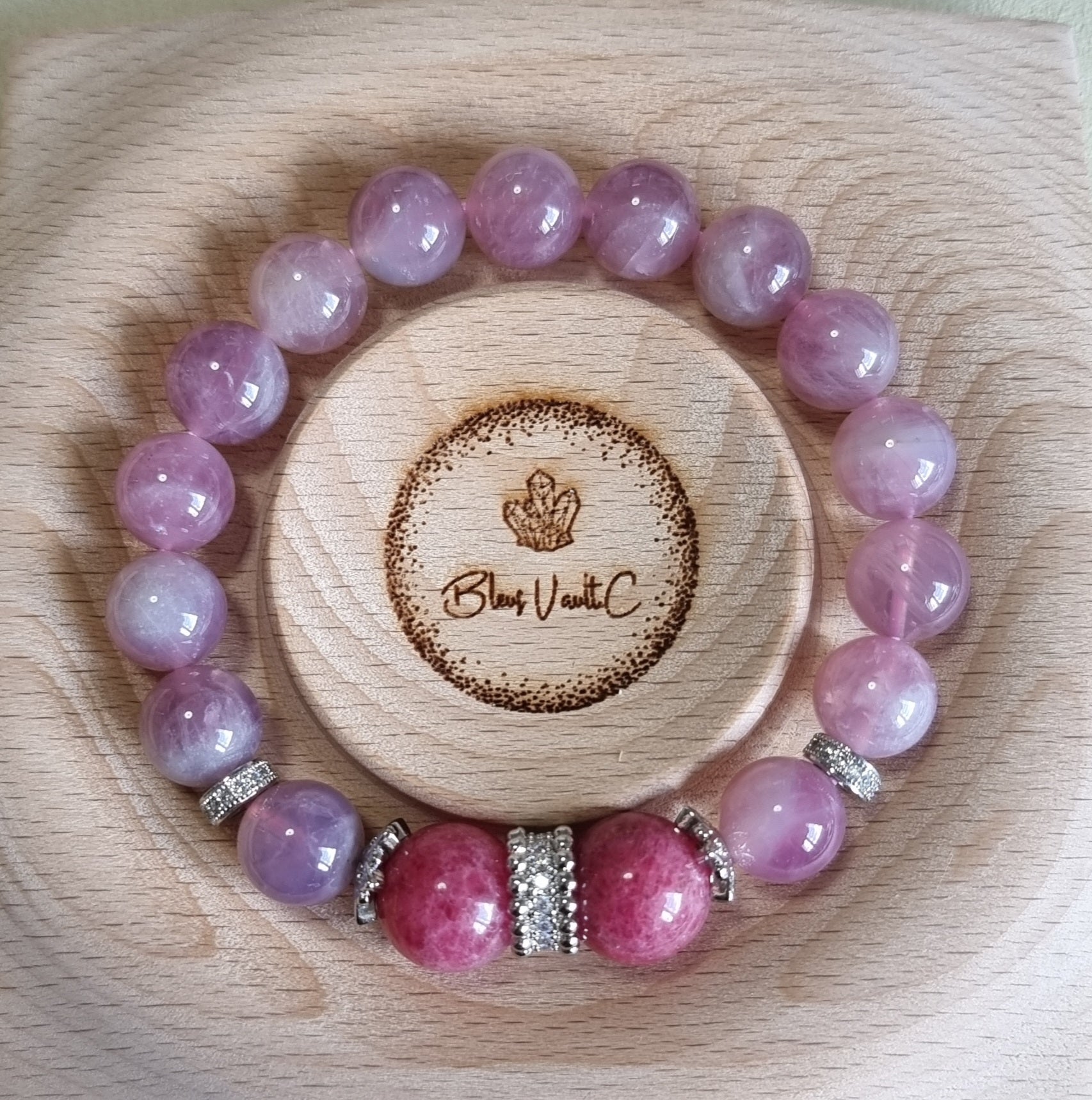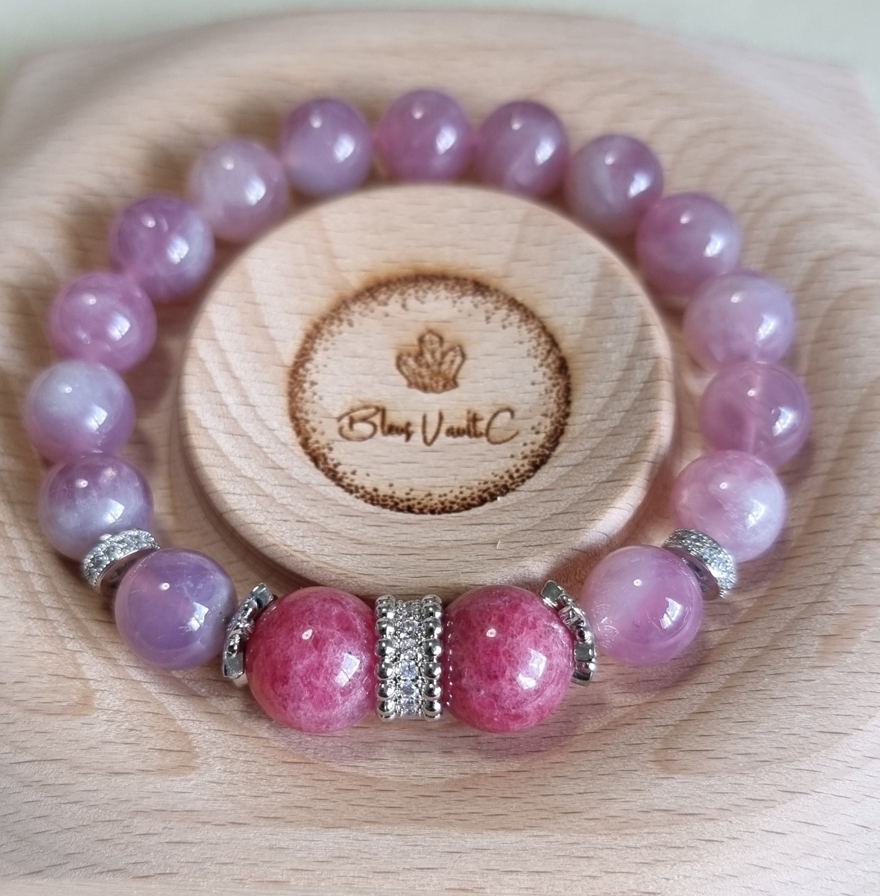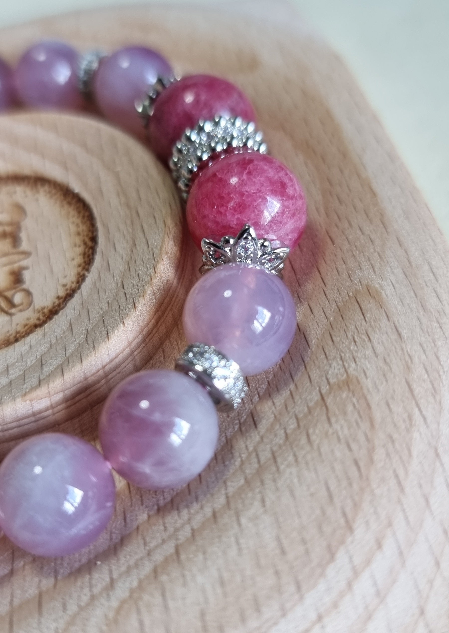Rose Quartz Rhodonite Bracelet in Silver 11mm. Inspired from Van Gogh "The Pink Peach Tree"
