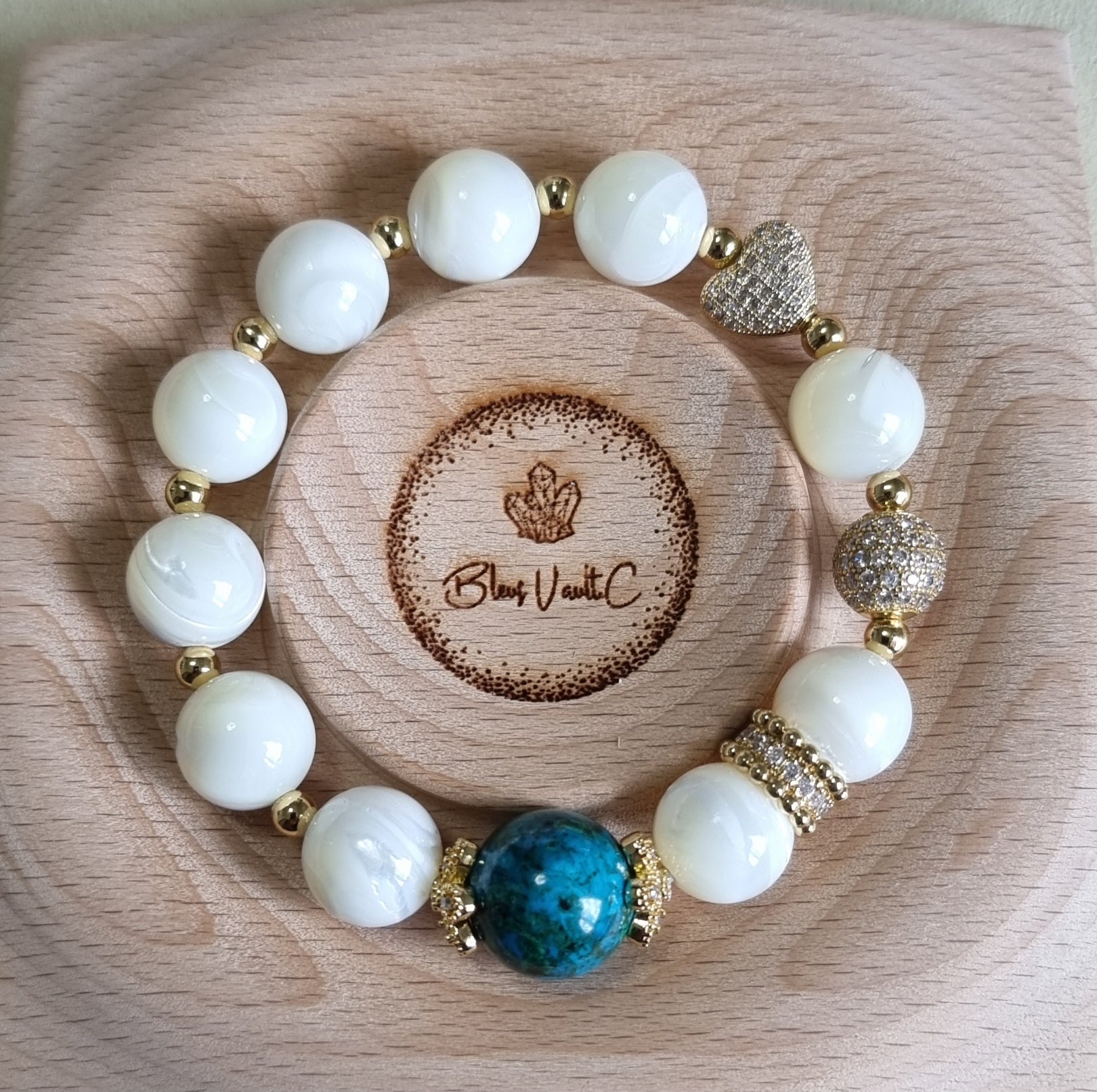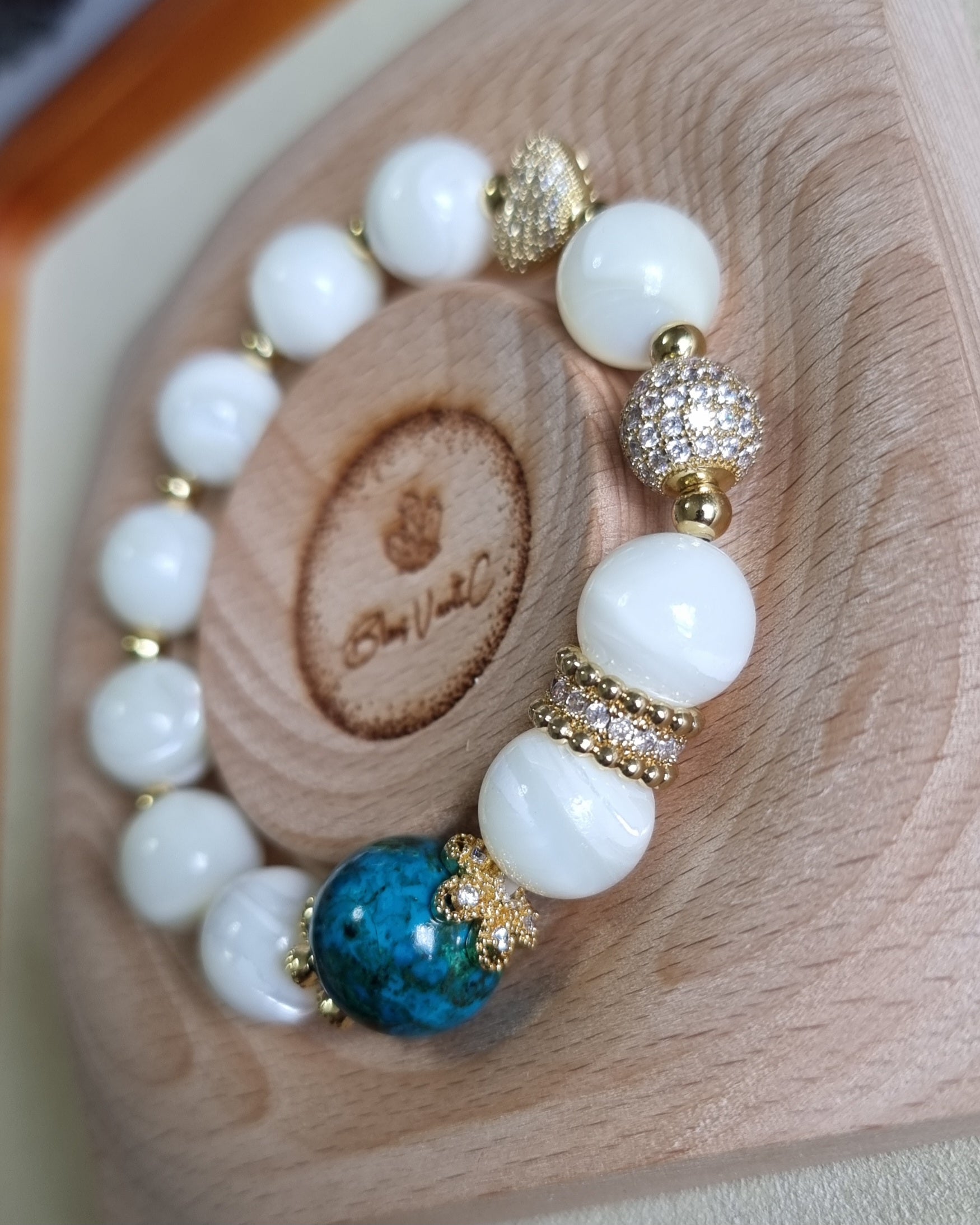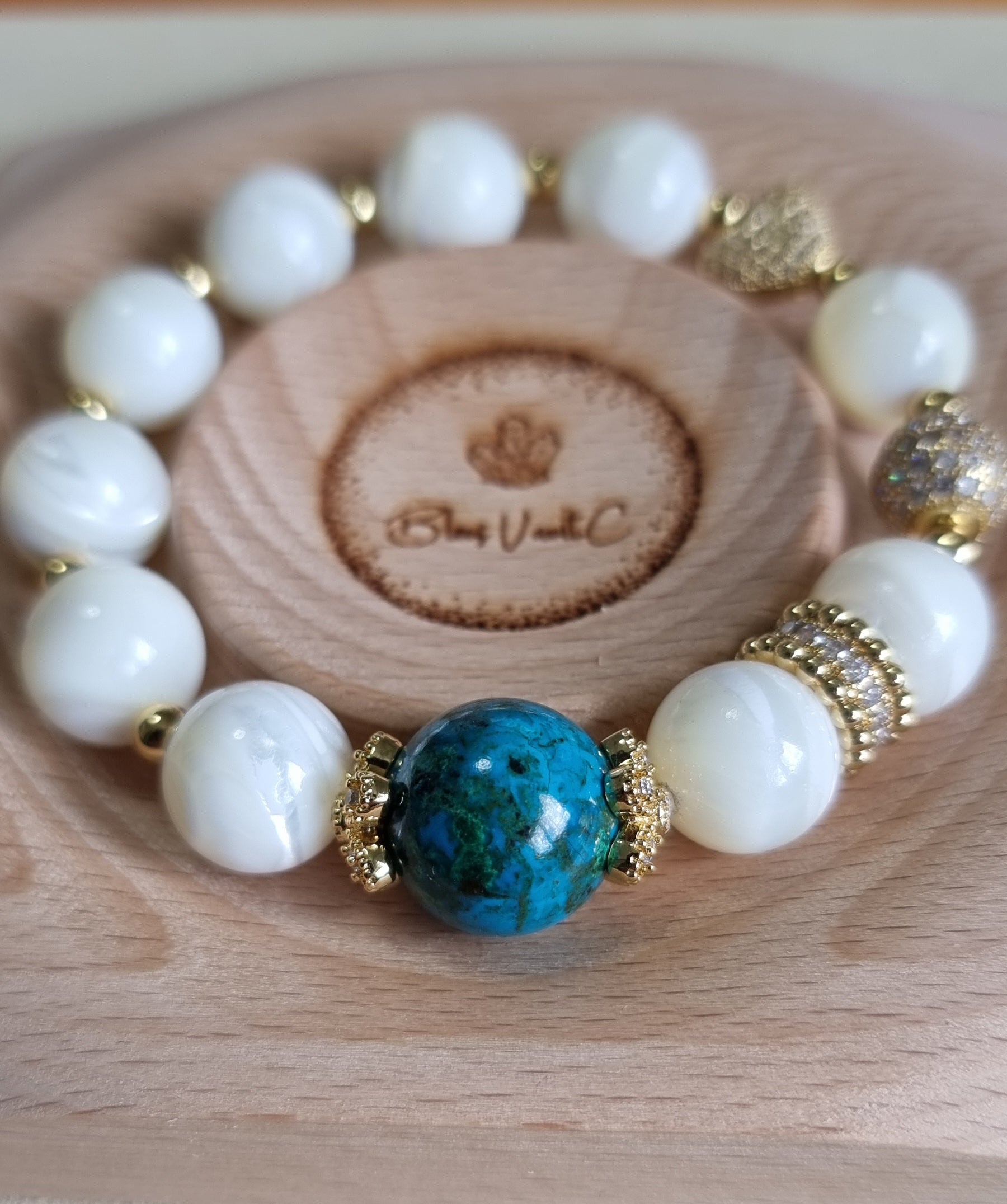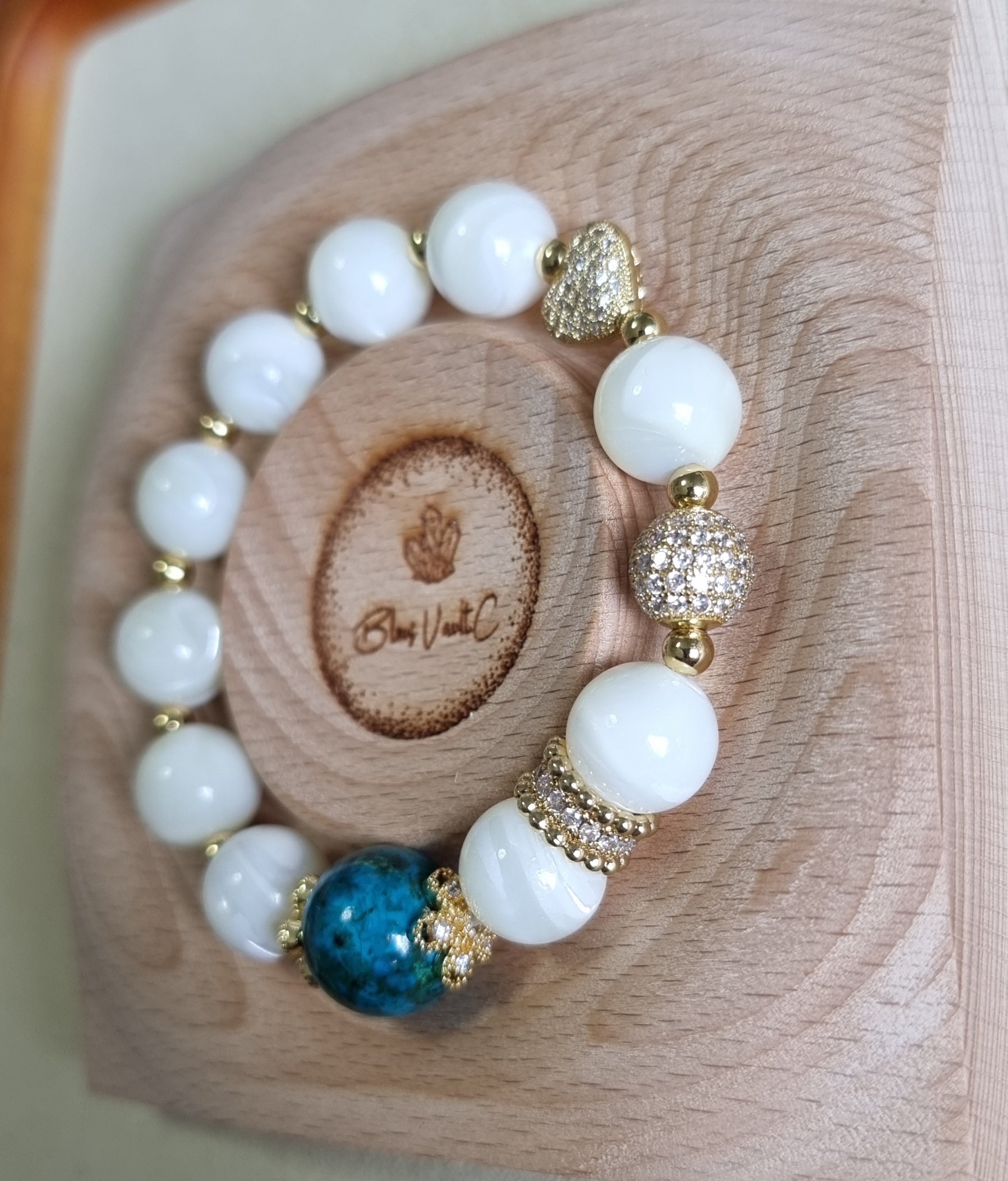 White Fritillaria Chrysocolla Bracelet in gold. Inspired from Monet's “La Mare, effet de neige”